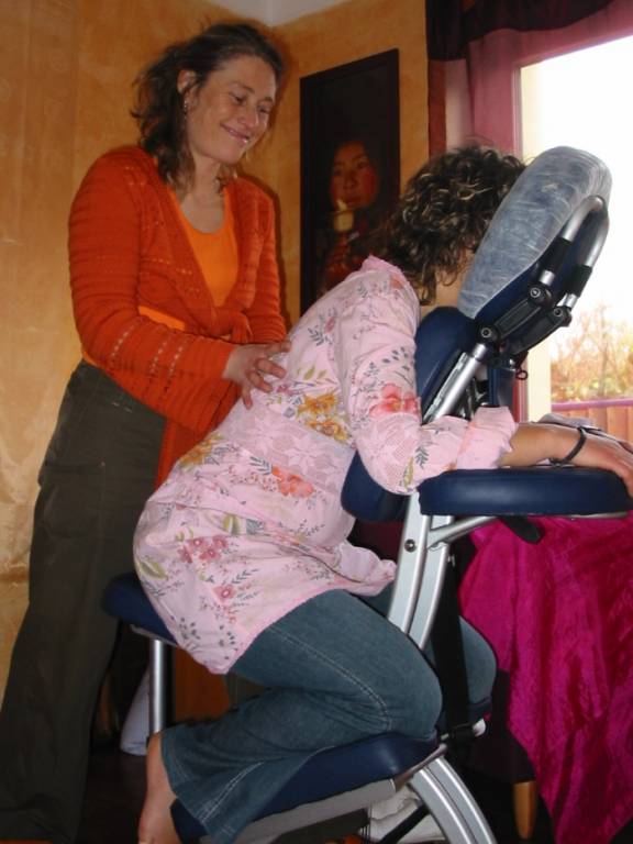 Assis dans une position confortable sur une chaise ergonomique en exposant au praticien la partie haute de votre corps, vous vous sentez détendu en quelques minutes. Tête, nuque, épaules, bras, mains, dos, hanches, jambes et pieds sont travaillés à travers vos vêtements.